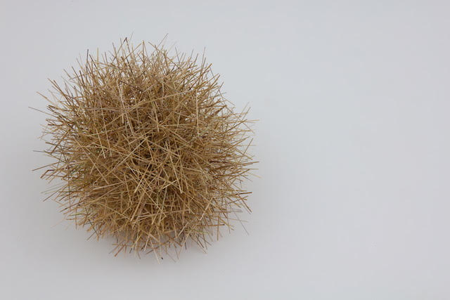 The pieces I create reflect not only the time invested but the nature of their assemblage – knitting, weaving, rolling and sticking – offers equally the opposite implication: the possibility of disassembly and its associations with the cyclical nature of existence.